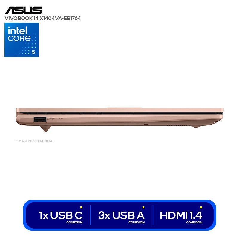 LAPTOP ASUS VIVOBOOK 14 X1404VA-EB1764 ( 90NB13U3-M00YF0 ) INTEL CORE 5-120U 4.4GHZ | RAM 16GB DDR5 | SSD 512GB | PANTALLA 14 FHD